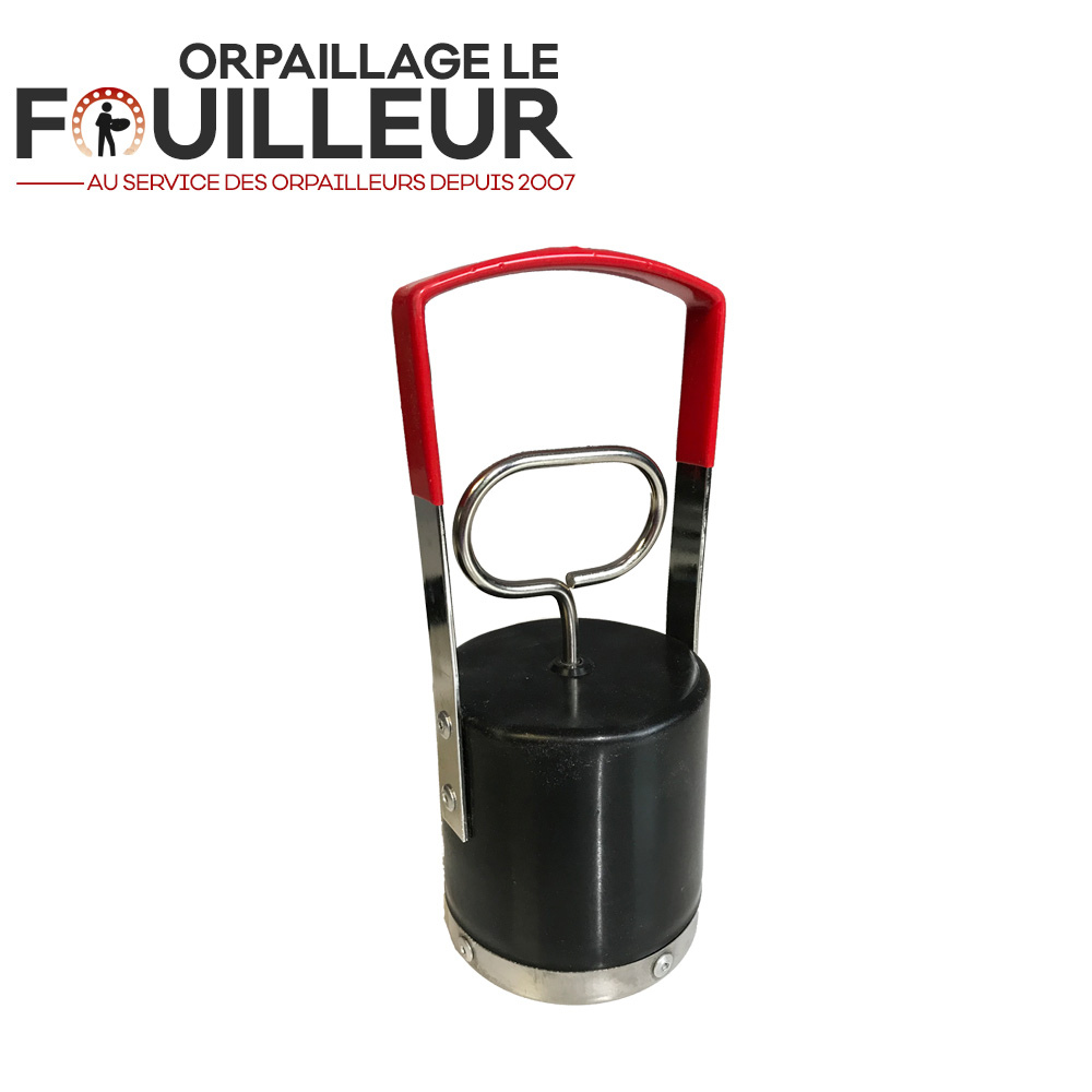 Cet aimant permet de dissocier une partie du sable noir (magnetite, ferrite...) des autres minéraux du concentré. Mesurant 25 cm de haut, son diamètre de 85mm permet de retirer rapidement d'importantes quantités de sable noir.