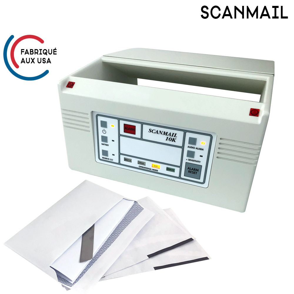 Le Scanmail est un détecteur de métaux dédié à l'inspection du courrier fabriqué aux USA. Il localise tout objet potentiellement dangereux: les détonateurs, batteries, circuits ainsi que les lames. Il est capable d'inspecter rapidement les enveloppes jusqu'à 6cm d'épaisseur. Il ignore les agrafes et trombones. Très simple à utiliser il ne requiert aucun étalonnage. Il n'émet aucune radiation et n'abime pas les pellicules, CD et autres supports magnétiques. En cas de coupure de courant, une batterie interne prend le relai et procure jusqu'à 4heures d'autonomie. Poids 9kg.