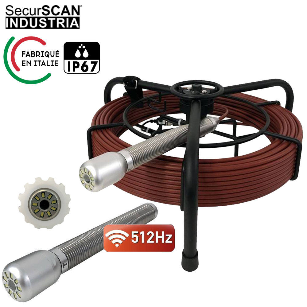 Fabriqué en Italie par Securscan, cette caméra poussée de vidéo inspection est équipée d'un émetteur 512hz compatible avec les principaux localisateurs du marché (Cscope, Radiodetection...). Elle vous permet de localiser les fuites et dans les gros tuyaux, canalisations, égouts et drains grâce à son enrouleur de 60m. Elle est compatible avec les systèmes de vidéo inspection VPI. La caméra push avec objectif de diamètre 8mm offre un angle de 90° et 18 LED pour une image claire même dans le noir.