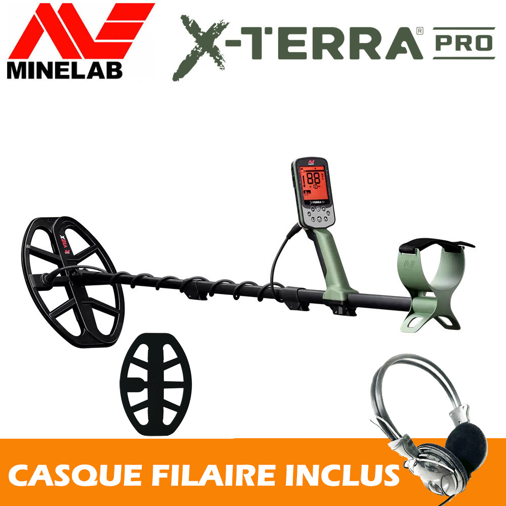 Casque audio filaire inclus. L'XTERRA PRO est le détecteur pour débuter qui offre le plus de possibilités: 3 fréquences au choix (5,10 et 15kHz), émetteur pour casque sans fil (casque ML 85 vendu séparément), canne téléscopique, entièrement étanche à 5m pour la plongée, batterie lithium rechargeable, 6 modes dont 2 pour la plage, nouvelle poignée vibrante ergonomique, disque 30x22 cm avec protège-disque...Léger (1.3kg) et bien équilibré, il est facile à prendre en main même pour un débutant. L'XTERRA PRO offre enfin une garantie de 3 ans.