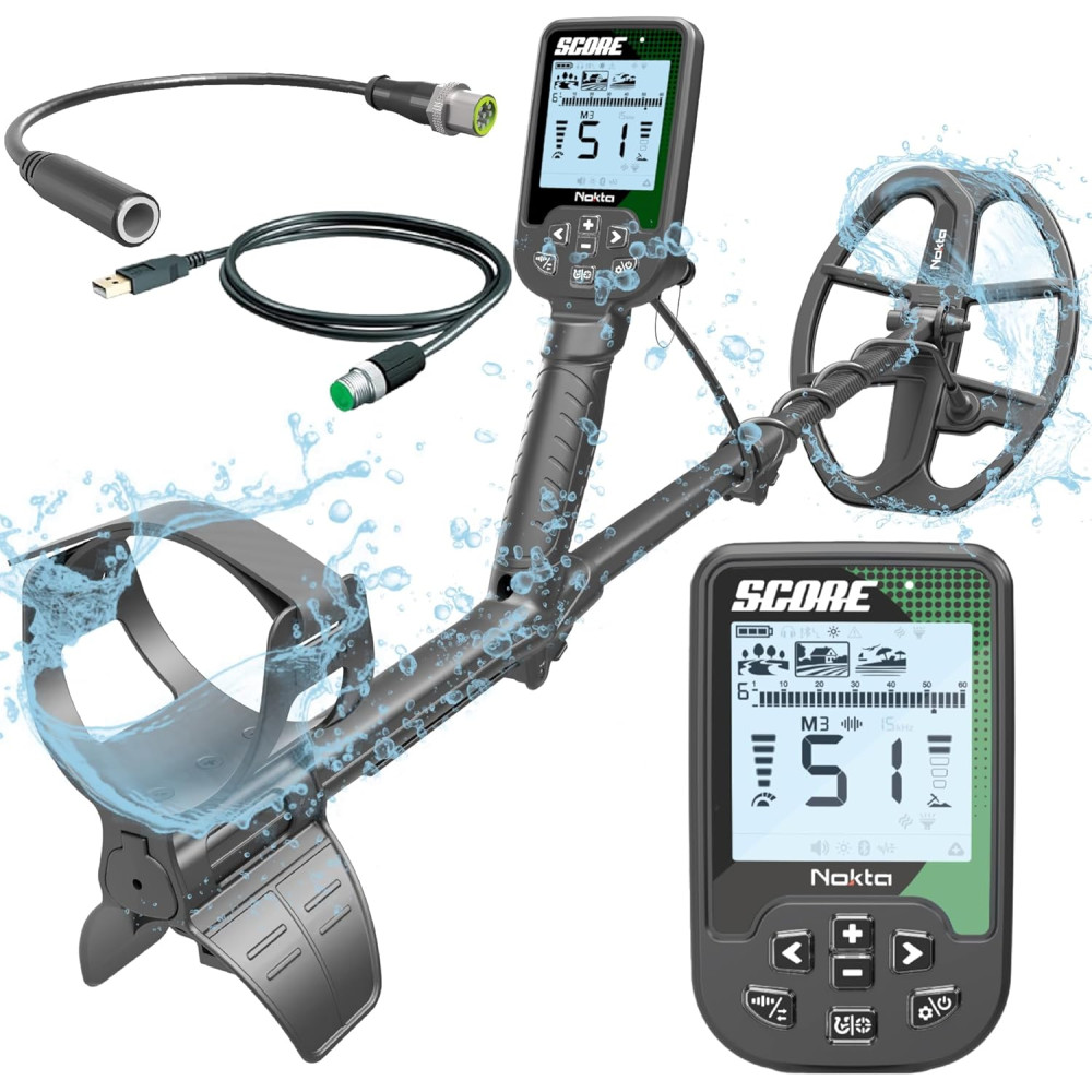 À la pointe de la technologie avec sa multifréquence simultanée (SMS), le SCORE est entièrement étanche à 5 mètres, idéal pour la détection sous l’eau en plongée, en eau douce ou en mer. Il est équipé d’un émetteur pour casque sans fil, compatible avec le casque Nokta ou tout autre casque Bluetooth à faible latence.
