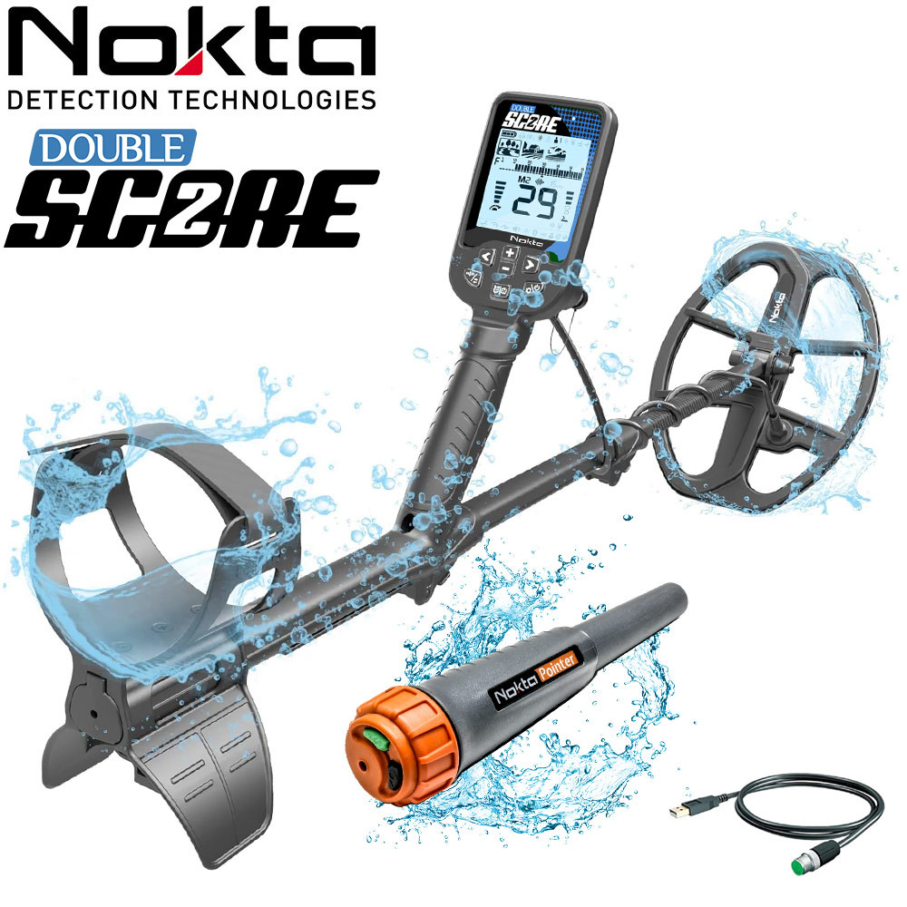 Pinpointer étanche NoktaPointer. Le NOKTA DOUBLE SCORE est un détecteur de métaux multifréquence qui permet de détecter sur tous les terrains au Maroc et même à la plage ou en plongée jusqu'à 5m de profondeur. Les terrains difficiles ne lui font pas peur qu'ils soient très pollués ou minéralisés. Comme son petit frère le SCORE, il est équipé d'une canne télescopique, d'un émetteur pour casque sans fil et d'une batterie rechargeable; il ajoute toutefois 5 niveaux de puissance et des réglages comme effet de sol, réactivité, volume fer... La technologie MF permet aussi de mieux identifier les cibles proches d'objets en fer. A ce prix, aucun autre détecteur n'offre de telles possibilités et vous pouvez le mettre à jour via USB gratuitement. Autonomie 12h, poids 1.2kg, garantie 3 ans.
