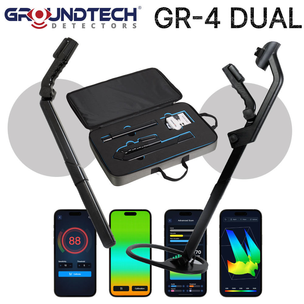 Le GR4 DUAL de Groundtech est le modèle supérieur du GR3 PLUS. Il permet de détecter vides et gros objets en métal jusqu'à 10m de profondeur. Très simple à utiliser grâce à son écran couleur il offre une navigation ergonomique dans le menu. Les données sont envoyées sur le téléphone/tablette (IOS ou Android) de votre choix via l'application incluse. Les anomalies du sol apparaissent en plusieurs couleurs (rouge pour métaux, bleu pour cavités). En un clic, l'application vous indique la profondeur de chaque cible. Remplacez la sonde géophysique par le diqque 35cm fourni et vous transformez votre GR4 DUAL en un véritable détecteur de métaux induction pulsée capable de localiser tout type de cible métallique quelle que soit la taille. Garantie 2 ans. Livré avec sac de transport et chargeur.
