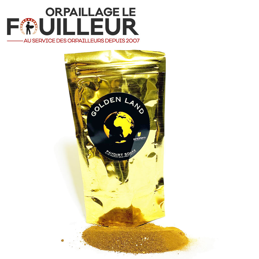 Ce sachet de 50gr contient de la terre minéralisée mais également une quantité d'or. Ce paydirt vous permet de vous entrainer à récupérer l'or lors du maniement de votre pan ou de tester votre rampe. C'est un cadeau idéal pour un orpailleur ou un collectionneur de minéraux. Provenance du Paydirt (or et terre minéralisée): Asie du sud Est. Ce paydirt contient 0.1gr d'or.