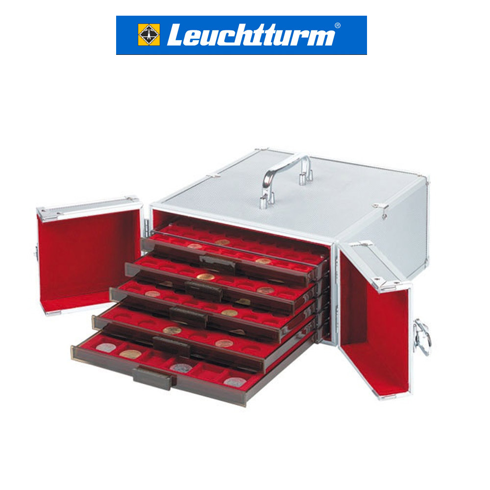 Les tiroirs/médailliers de la marque allemande LEUCHTURM sont la référence chez les collectionneurs et numismates. Cette société allemande a été crée en 1917 et propose des produits de qualité fabriqués en Europe; rien à voir avec les accessoires numismatiques de mauvaise qualité qu'on trouve parfois sur internet ou en supermarché. A titre d'exemple, dans une malette à tiroirs haut de gamme LEUCHTURM, les monnaies ne se renversent pas...