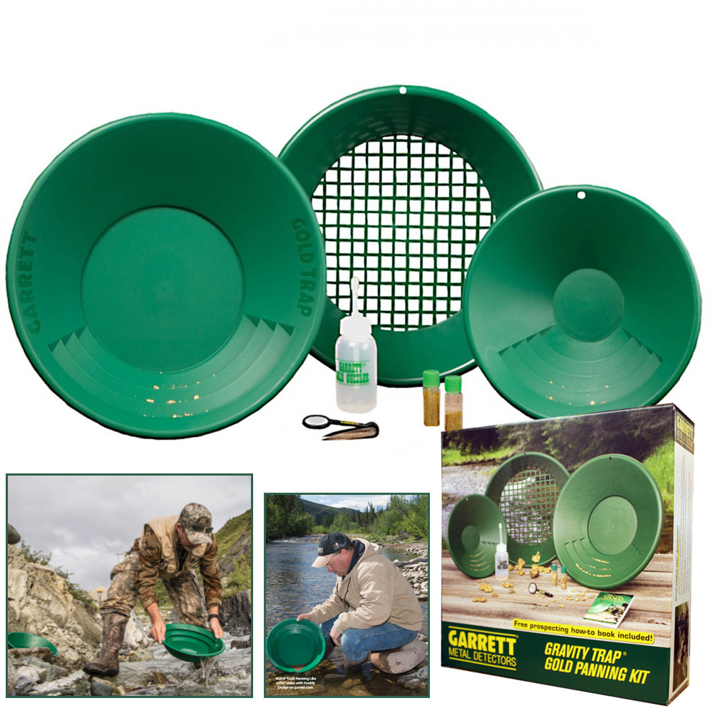 Ce kit d'orpaillage GARRETT est dédié aux débutants avec un matériel de base. Il comprend 2 battées (25 et 35cm) et un tamis 35cm. Il est livré avec 1 flacon d'aspiration et de flacons de stockage pour les paillettes d'or sans oublier la pince-loupe Garrett.