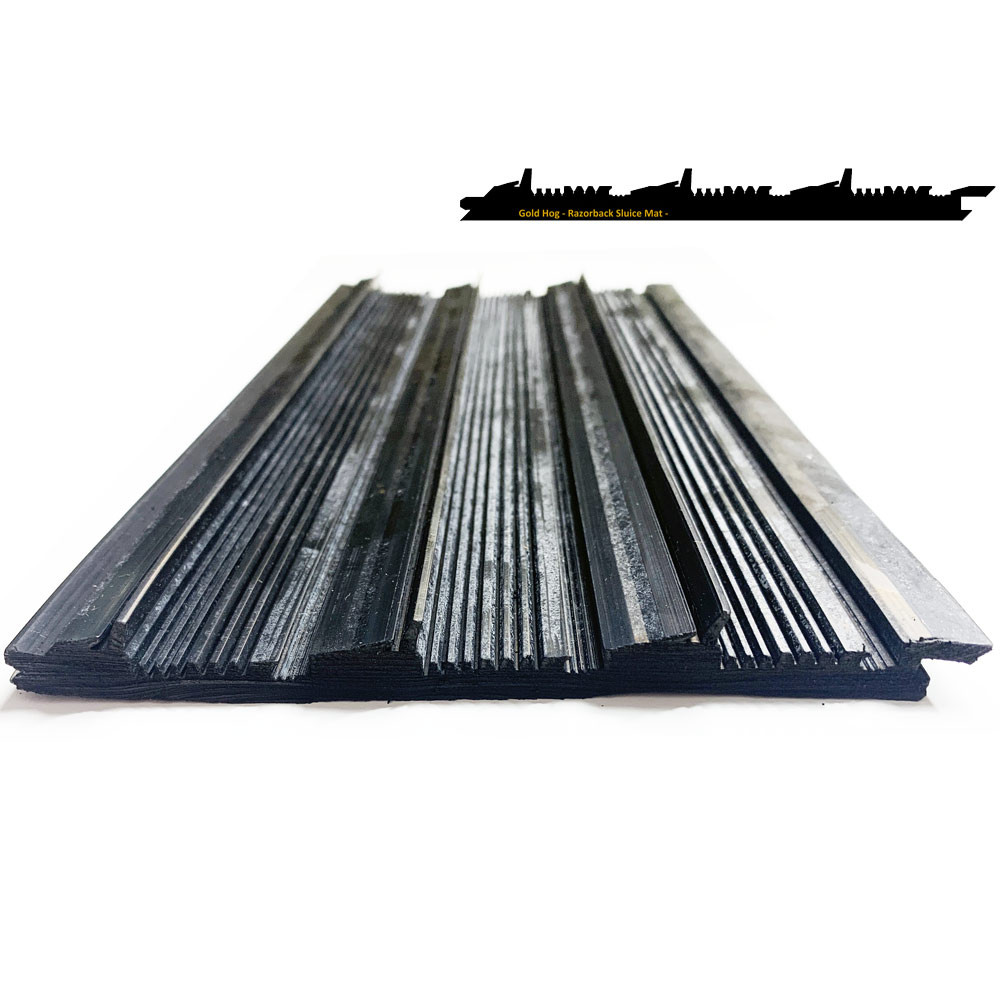 Le tapis Razorback est conçu pour fonctionner dans des vitesses d'eau lentes à modérées. Il utilise des micro riffles pour générer des vortex turbulents qui ne rejettent pas l'or fin dans des courants supérieurs plus rapides.