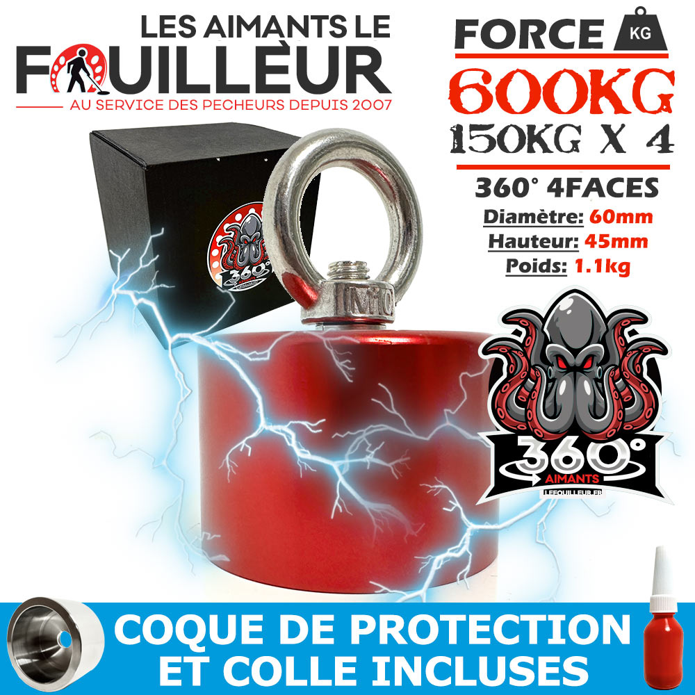 Indice : Très bonne puissance sur 4 faces (360°) - Poids maximum soulevé: 600 kg (150 Kg par face) - Colle incluse