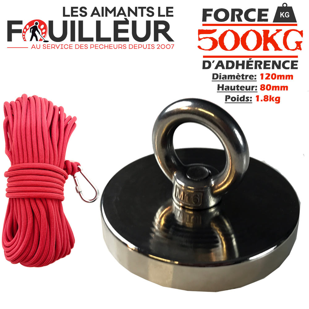 Le Fouilleur offre une gamme complète d’aimants Néodyme de grande qualité avec anneau de levage intégré en acier. Rien à voir avec les aimants de piètre qualité achetables sur Amazon/Wish/Aliexpress: nos aimants en "pot" sont traités avec une triple couche de nickel qui les protège de l'oxydation leur assurant une très bonne durée de vie. Ils sont donc particulièrement adaptés à la recherche dans des puits ou dans les cours d’eau Poids: 1800 gr - Diamètre: 120mm